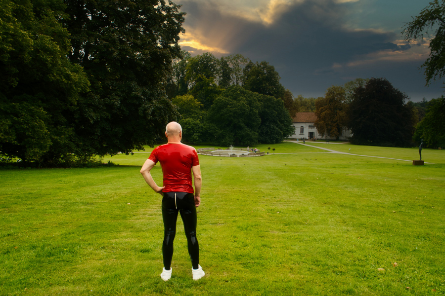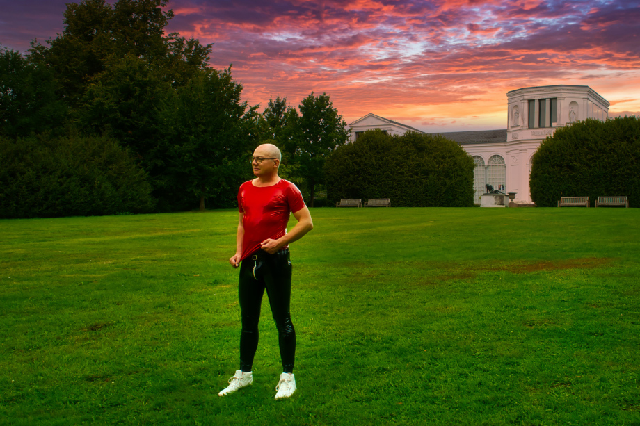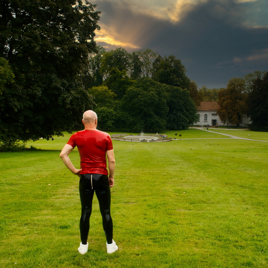 In meinem roten Latexshirt und der eng anliegenden Leggings, deren Reißverschluss sich kühn durch den Schritt zog, spazierte ich durch den Park. Das Material glänzte im Sonnenlicht